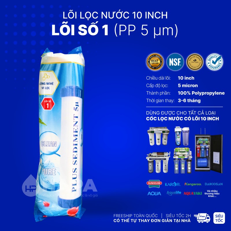 - Lõi lọc số 1: SEDIMENT Filter - Thay sau 6 tháng sử dụng