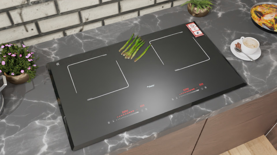 • Bếp đôi: 2 vùng từ sử dụng mặt kính Kanger vát 4 cạnh bo góc sang trọng