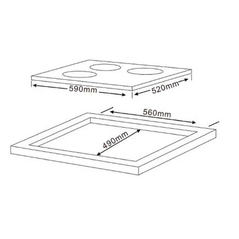 • Bếp ba: 2 vùng từ + 1 hồng ngoại, sử dụng mặt kính Vitro Ceramic vát 4 cạnh bo góc sang trọng