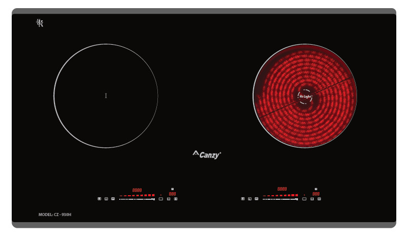 Bếp điện từ cảm ứng CANZY CZ-930H có Mặt kính Vitro Ceramic thuộc dòng bếp từ cao cấp của thương hiệu thiết bị nhà bếp nổi tiếng CANZY, là sự kết hợp hoàn hảo giữa 1 bên bếp từ (sử dụng các bộ nồi chảo inox từ, tiết kiệm điện và đun nấu nhanh hơn) và 1 bên bếp điện hồng ngoại (không kén nồi và có thể nướng trực tiếp trên bề mặt bếp) giúp cho cuộc sống của bạn thuận tiện hơn.