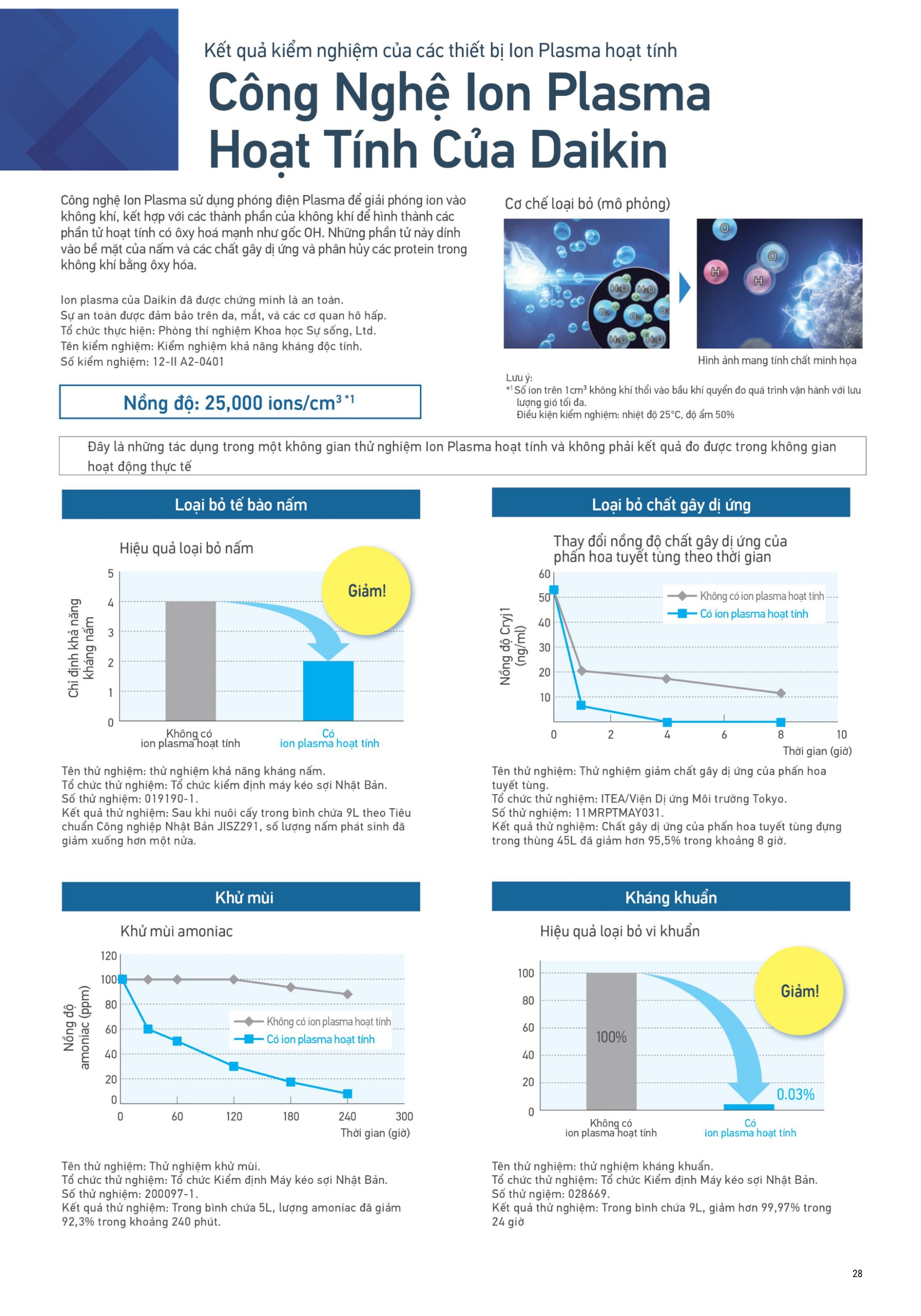 Theo một báo cáo từ Viện Nghiên cứu Chất lượng Không khí Nhật Bản, máy lọc không khí Daikin sử dụng công nghệ Ion Plasma có khả năng loại bỏ tới 99.98% các hạt bụi mịn PM2.5, vượt trội so với tiêu chuẩn của ngành [8].