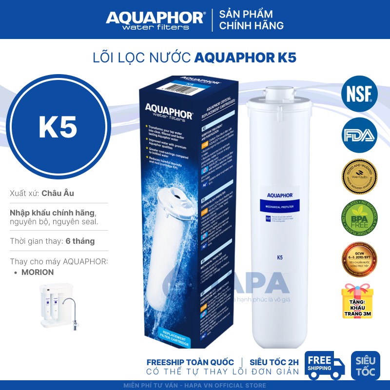 - Tất cả Máy Lọc Nước AQUAPHOR mua tại HAPA đạt tiêu chuẩn chất lượng với đầy đủ giấy tờ và chính sách bảo hành chính hãng, bảo dưỡng trọn đời.