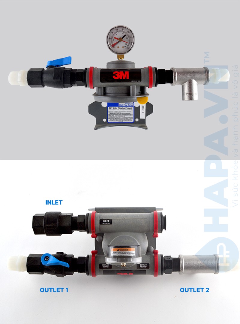 - About the product: We designed the 3M™ High Flow Series Dual Port Single Manifold Assembly (DP1XX) which provides a dual outlet design for 3M™ High Flow Series water filtration cartridges. This product features 3/4” MNPT inlet and outlet water connections.