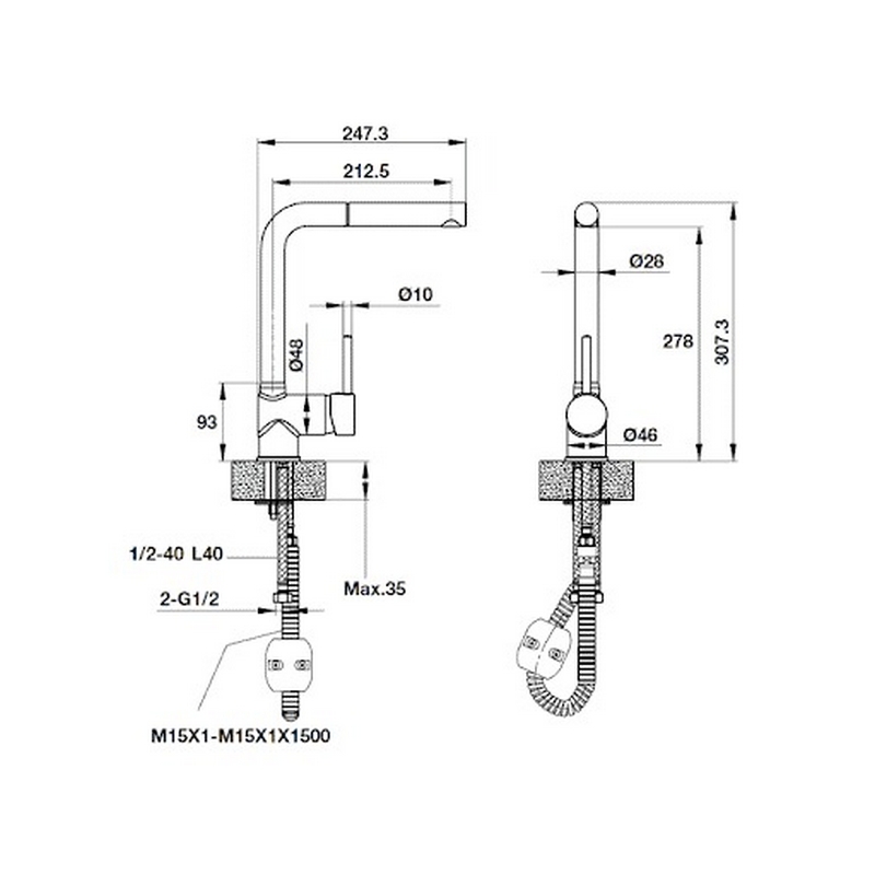 Thông số kỹ thuật vòi rửa chén Hafele HT-G280 Black 570.51.380: