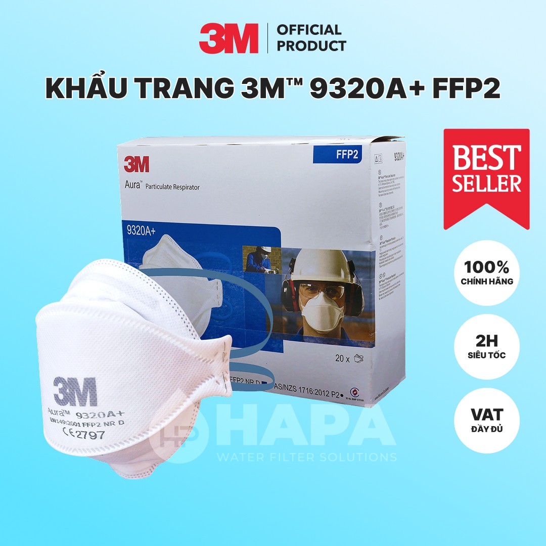 Khẩu Trang 3M 9320A+ FFP2 Aura™ cao cấp chuẩn Châu Âu - Hàng Chính Hãng 3M