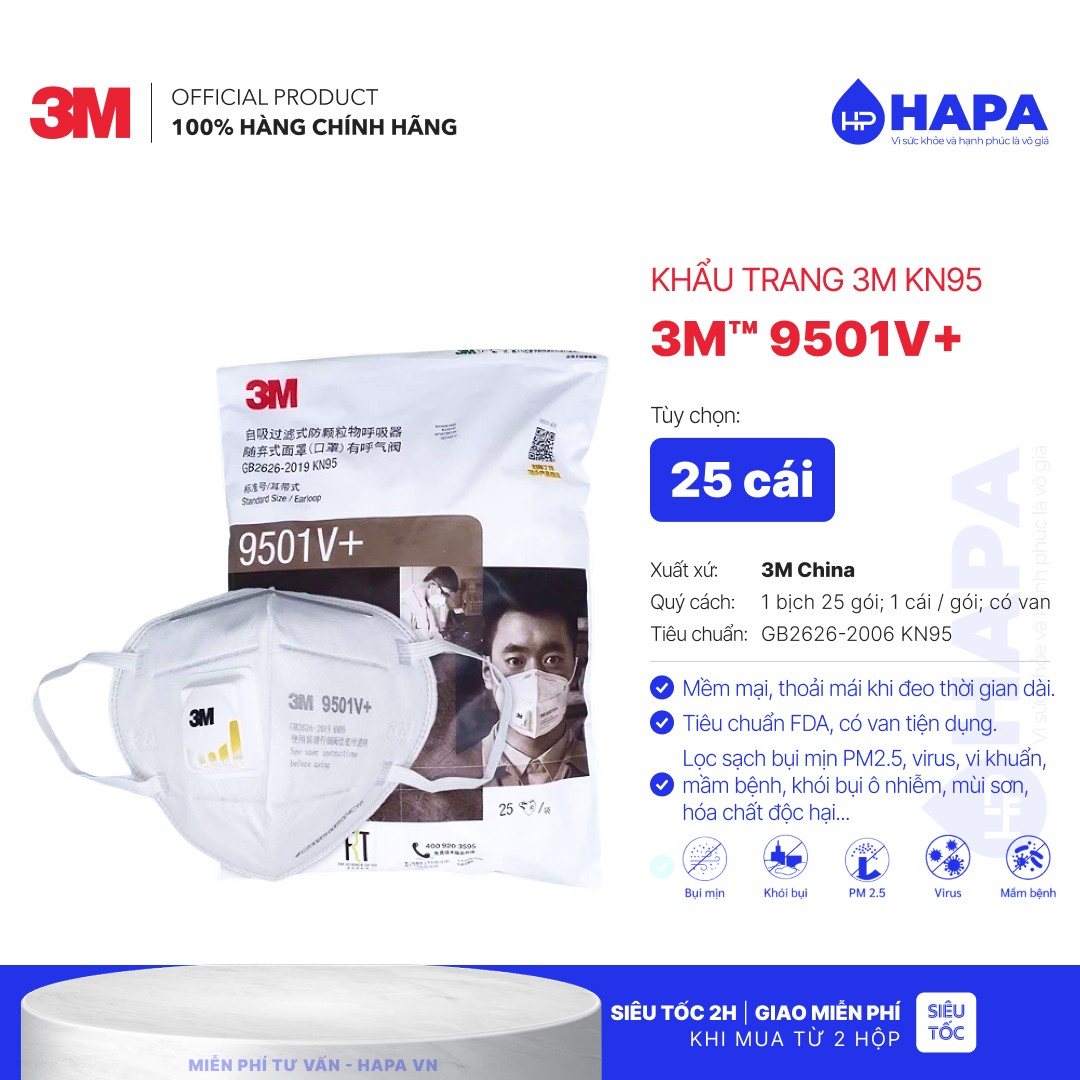 - Tất cả Khẩu trang 3M tại HAPA là hàng chính hãng, nhập khẩu nguyên hộp 100%.