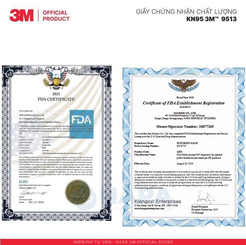 - Tất cả Khẩu trang 3M mua tại HAPA đạt tiêu chuẩn chất lượng với đầy đủ giấy tờ và chính sách bảo hành chính hãng.