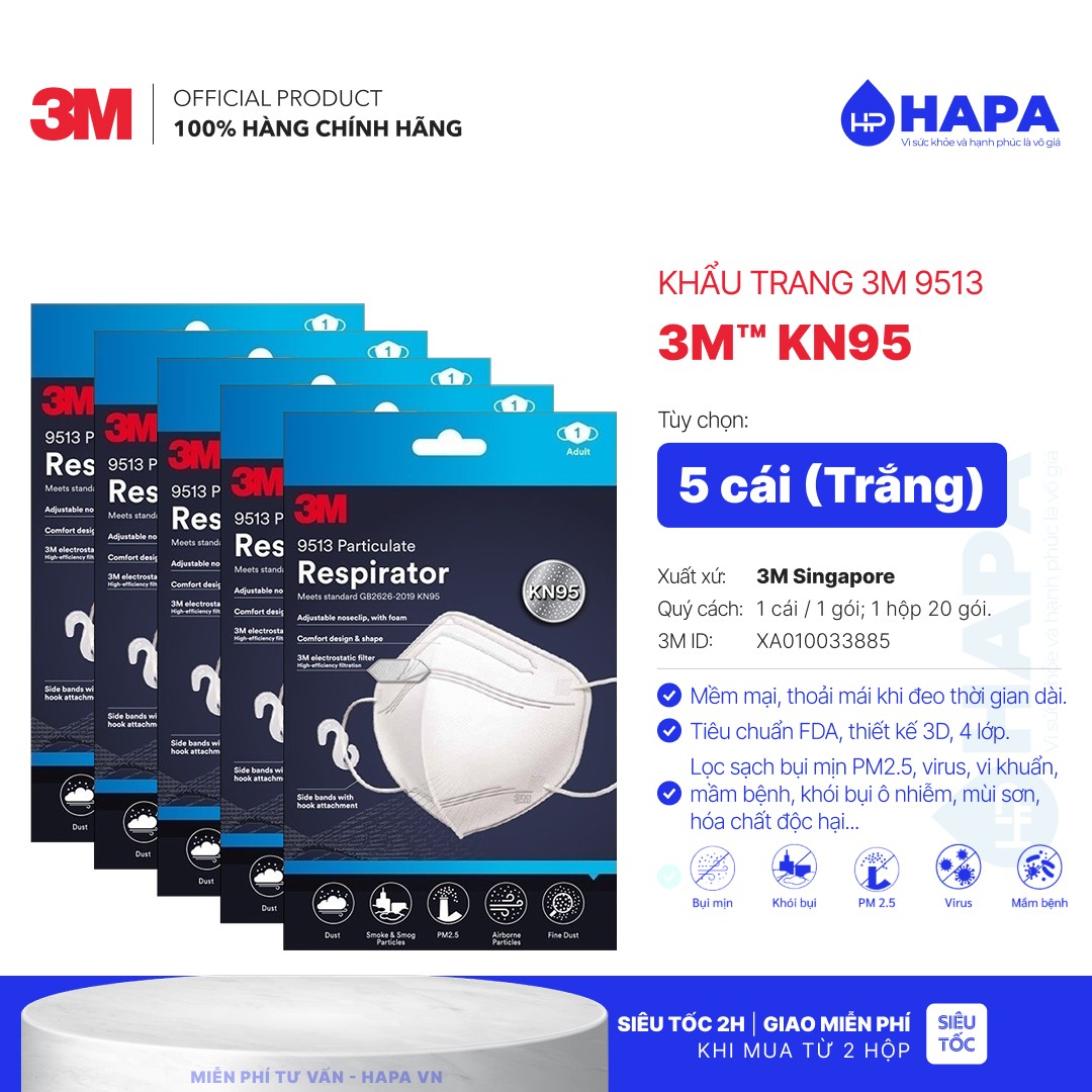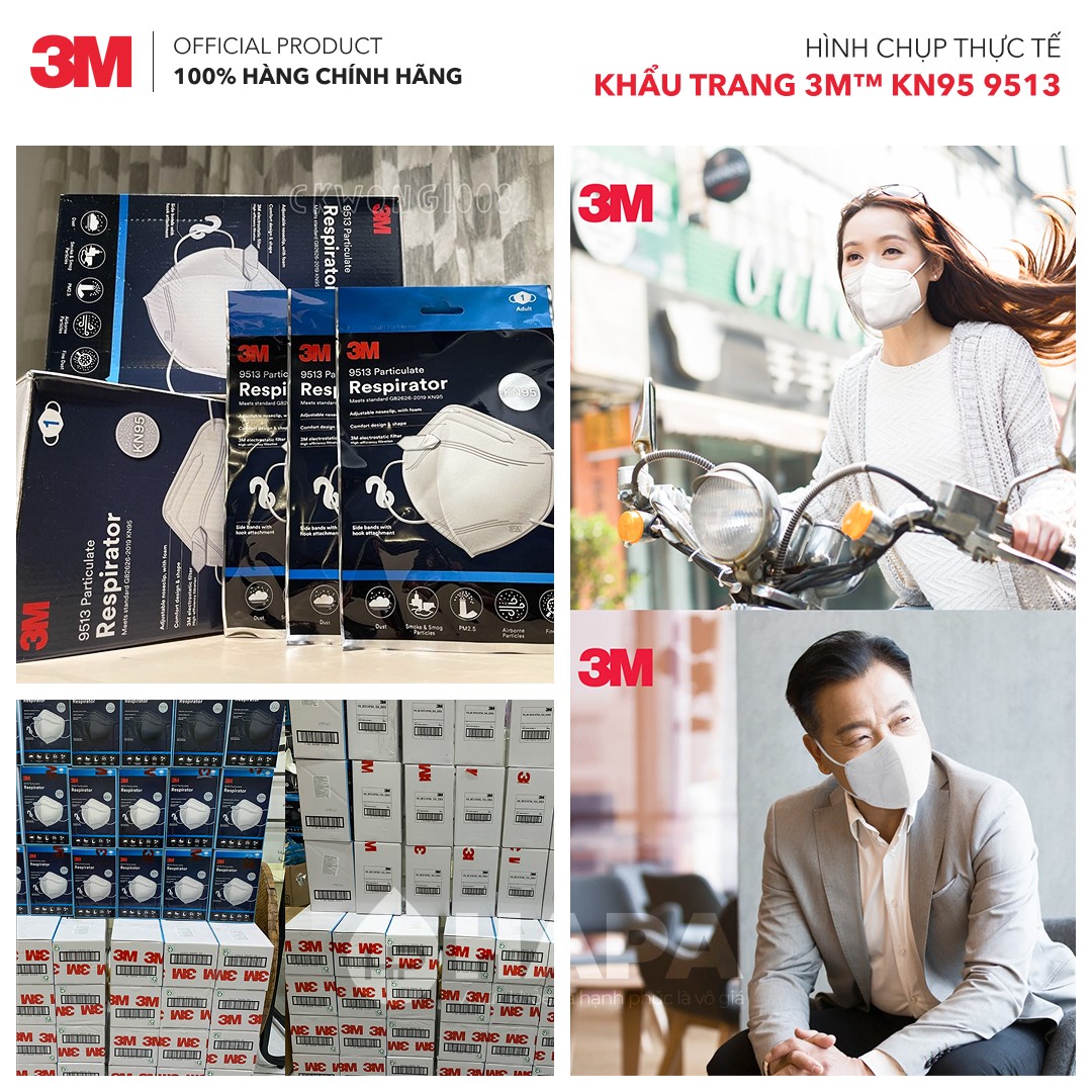Khẩu Trang 3M KN95 9513 - Lọc bụi mịn PM2.5, vi khuẩn, virus - Hàng Chính Hãng 3M