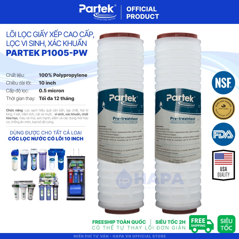 Lõi Lọc Giấy Xếp PARTEK / PARAGON P1005-PW 10 INCH full models có bán đầy đủ tại website HAPA.VN hoặc shop HAPA trên các sàn TMĐT. |