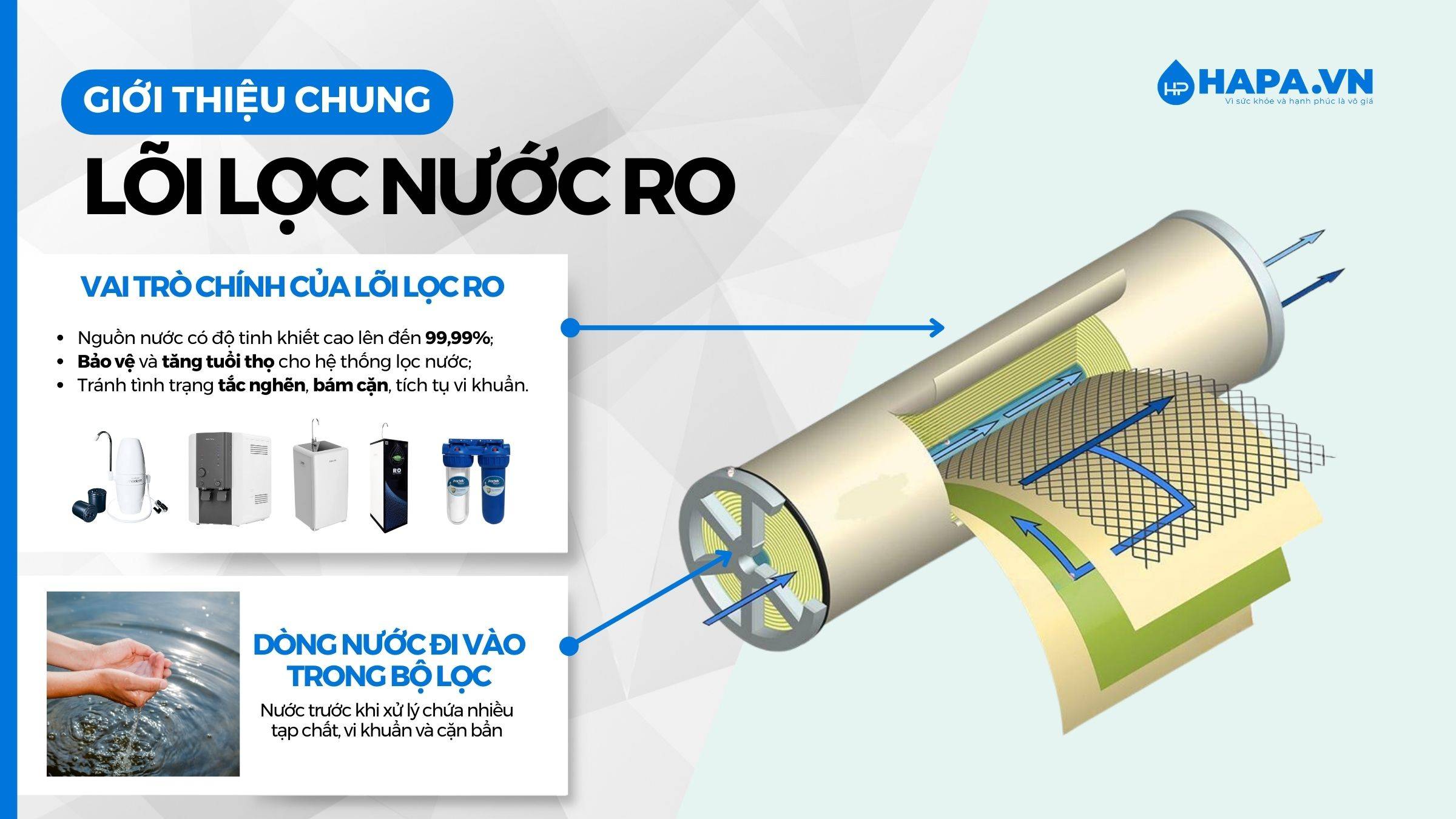 - Ở một số máy, Lõi Lọc Nước RO được xem là giai đoạn tiền lọc cho cả hệ thống máy, nó đóng vai trò giúp bảo vệ và tăng tuổi thọ cho các lõi lọc sau đó;
