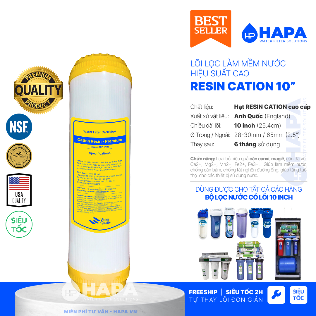 - Lõi CATION có thể hoàn nguyên bằng cách ngâm vào nước muối loãng để tăng tuổi thọ sử dụng lõi.