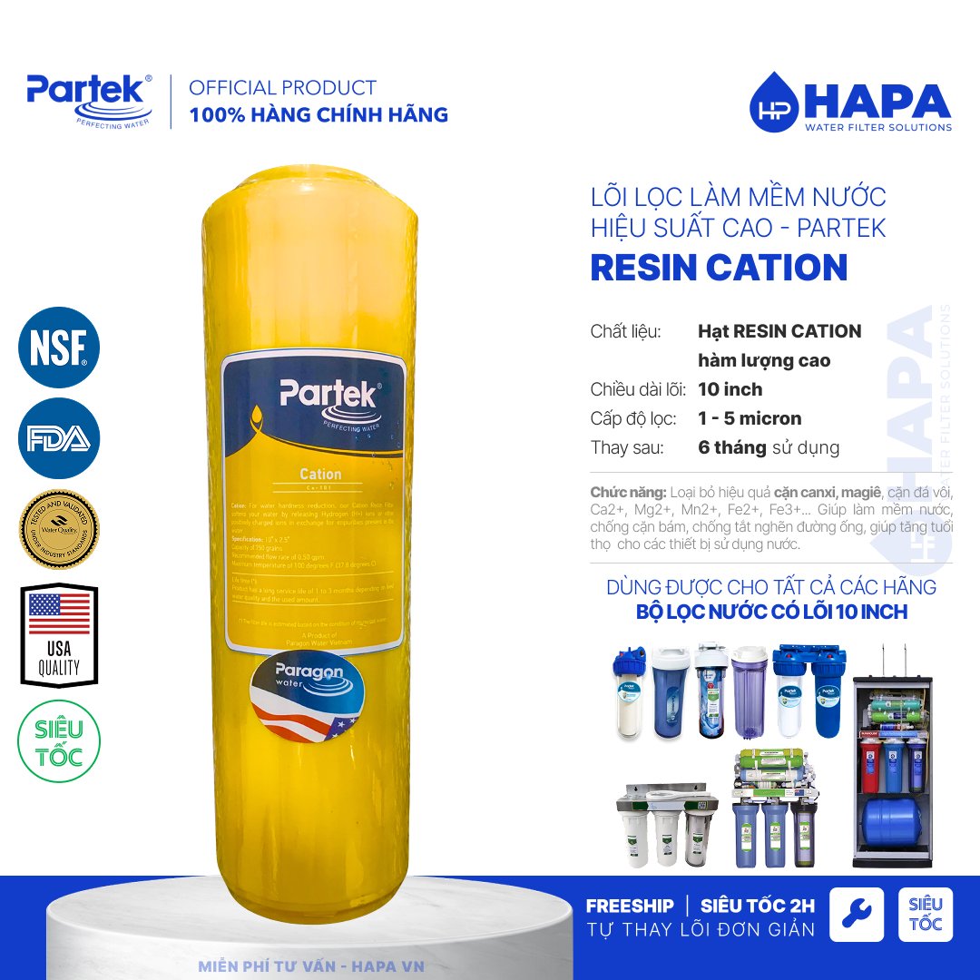 | Loại lõi lọc nước: | Lõi lọc Resin CATION - Làm mềm nước cứng |