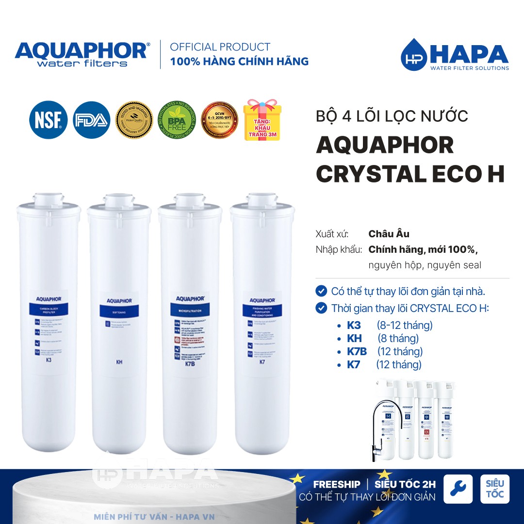 - Máy Lọc Nước AQUAPHOR CRYSTAL ECO H là hàng chính hãng AQUAPHOR, được nhập khẩu nguyên bộ 100% từ Châu Âu.