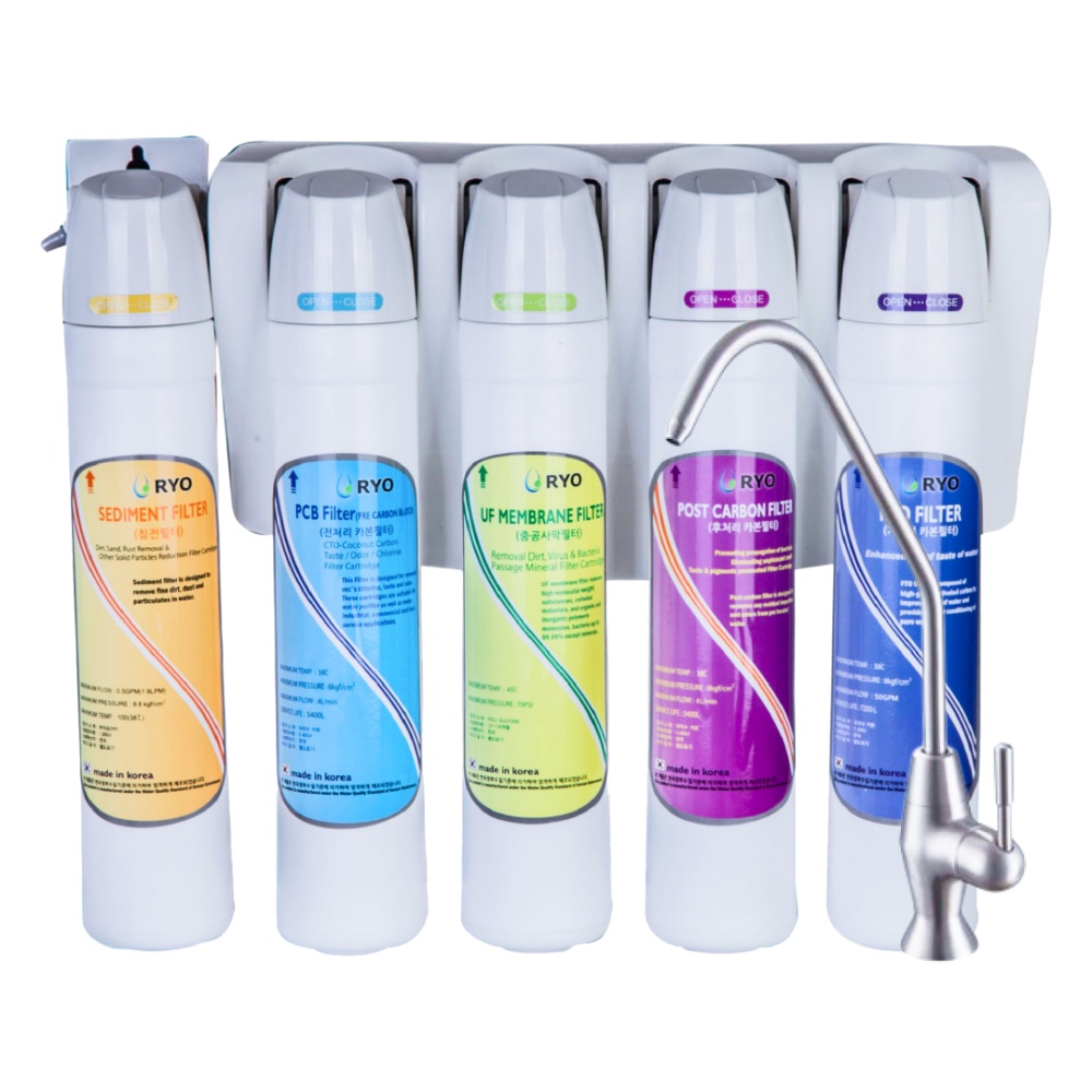 - 5 cấp lọc hiệu quả: Sediment – Pre Carbon – UF Membrane – Post Carbon – TCR.