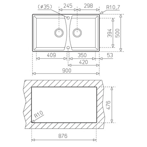 Kích thước lắp âm (D/R/S): 876 x 476 x 220 mm