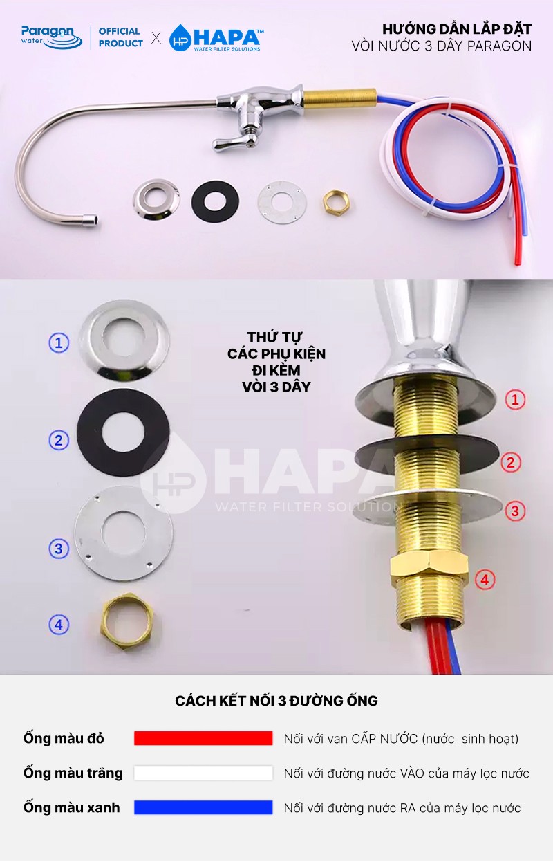 - These taps has three 1/4″ tubes coming out from the bottom, water supply line, system inlet water, system outlet water to tap.